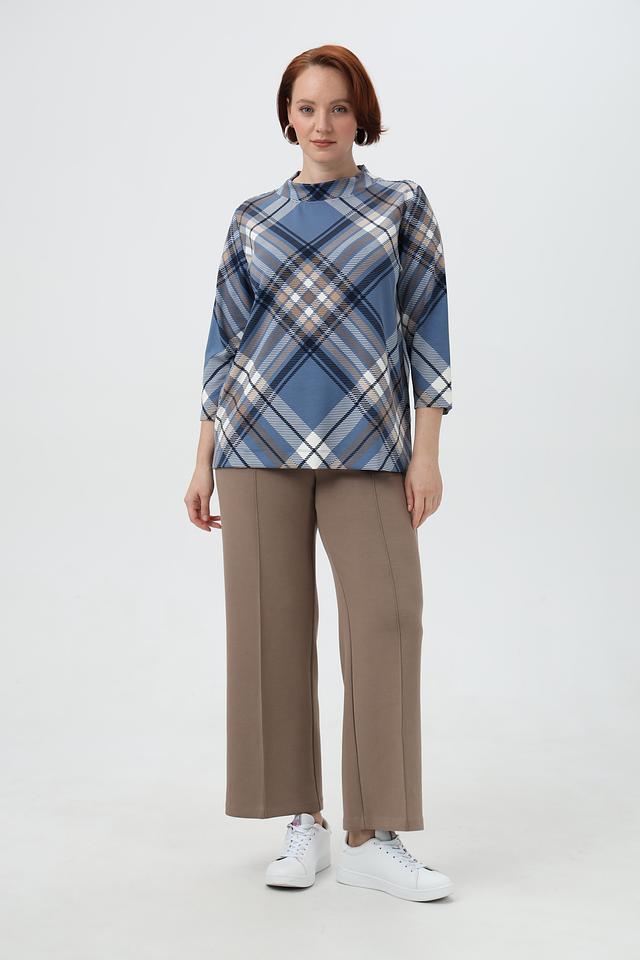 Эта стильная блуза от Via Appia выполнена в приятной голубой цветовой гамме и украшена классическим принтом "клетка", сочетающим в себе оттенки белого, бежевого и тёмно-синего. Блуза имеет свободный крой, который не сковывает движений и обеспечивает комфортную посадку по фигуре.