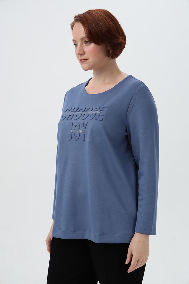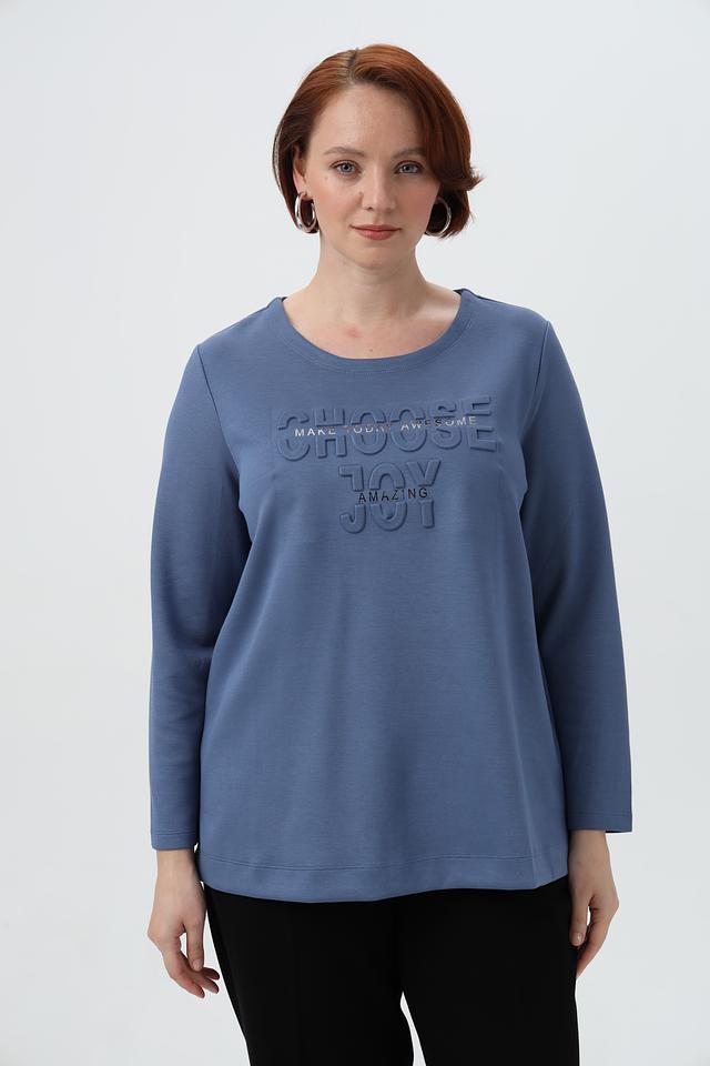 Особенность данного пуловера – рельефный принт с надписью “CHOOSE JOY AMAZING”. Принт выполнен в тон изделия, что придает ему изысканность и неброскость.
