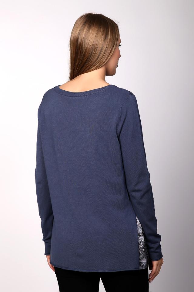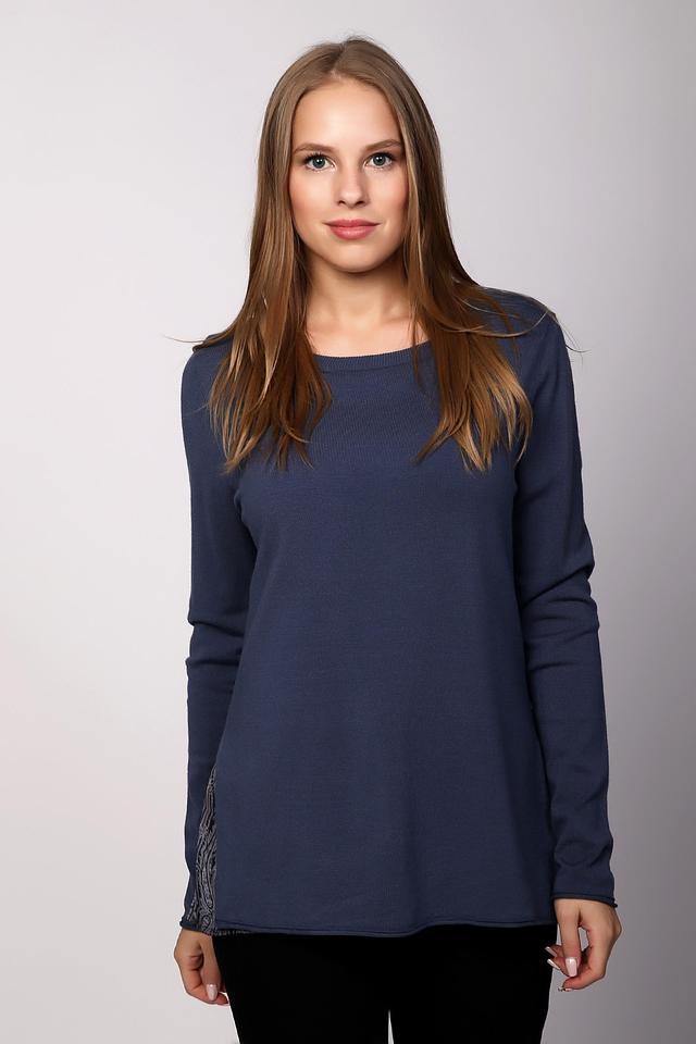 Синий пуловер от Via Appia с длинными рукавами и оригинальным принтом на боковой части. Изготовлен из мягкой вискозы с добавлением полиамида для комфорта и износостойкости. Состав: вискоза 80%, полиамид 20%