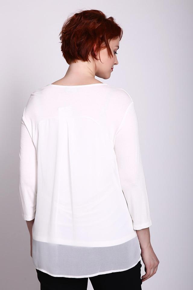 Состав блузы: 94% вискоза, 6% эластан. Вискоза придает ткани мягкость и приятные тактильные ощущения, а эластан обеспечивает хорошую посадку по фигуре. Блуза проста в уходе и не требует сложной глажки.