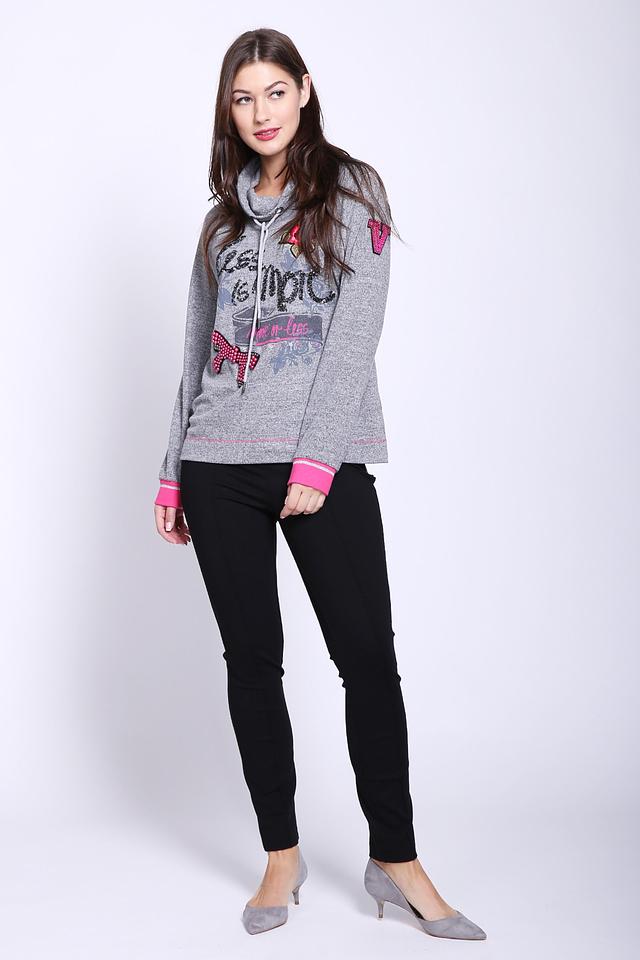Серый пуловер Via Appia с ярким принтом и розовыми манжетами станет стильным дополнением к вашему гардеробу. Удобный крой и мягкий материал обеспечат комфорт в течение дня. Состав: вискоза 80%, полиэстер 15%, эластан 5%