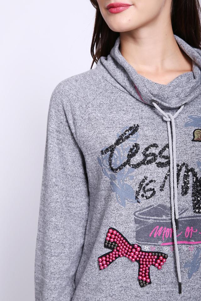Этот стильный пуловер от Via Appia выполнен в сером цвете и украшен оригинальным принтом с изображением чемодана, бантика и цветочных элементов. Модель имеет удобный крой и слегка расширенный силуэт, что обеспечивает свободу движений.