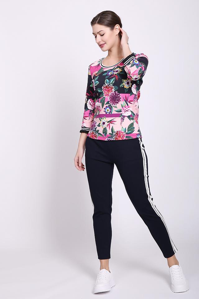 Брюки имеют прямой крой и удобную посадку благодаря эластану в составе. Боковые белые полоски добавляют динамики и спортивного шика образу. Пояс на резинке обеспечивает комфорт в носке.