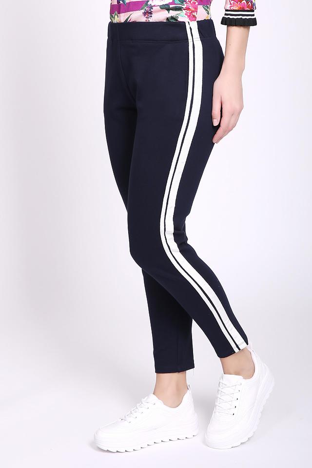 Женские брюки Via Appia темно-синего цвета с боковыми белыми полосками – стильный и комфортный выбор для повседневной носки. Модель выполнена из мягкой вискозы с добавлением полиамида и эластана, обеспечивающих удобную посадку и свободу движений. Состав: вискоза 70%, полиамид 23%, эластан 7%