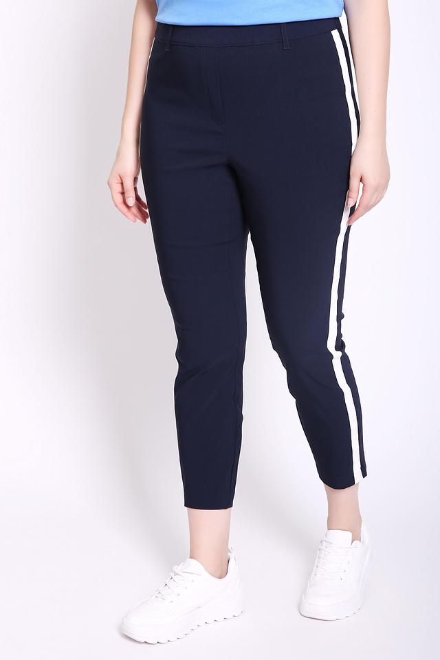 Особенностью модели является контрастная белая полоса, проходящая вдоль боковой части брюк, что придает им спортивный и современный вид. Брюки идеально подойдут для создания как повседневных, так и более элегантных образов. Они хорошо сочетаются с различными видами обуви и верхней одежды.