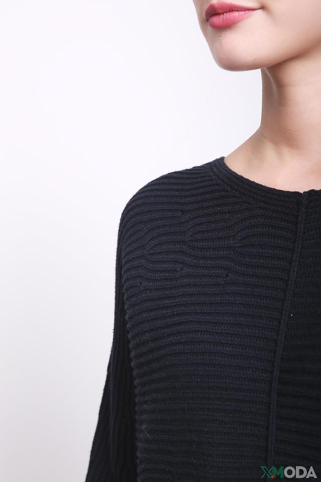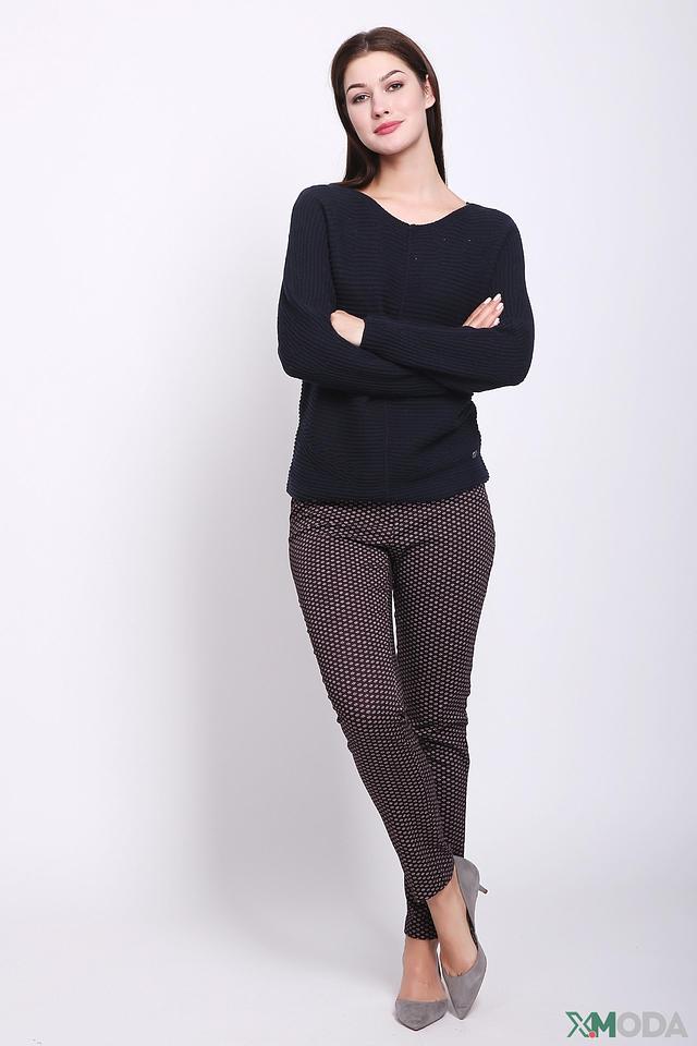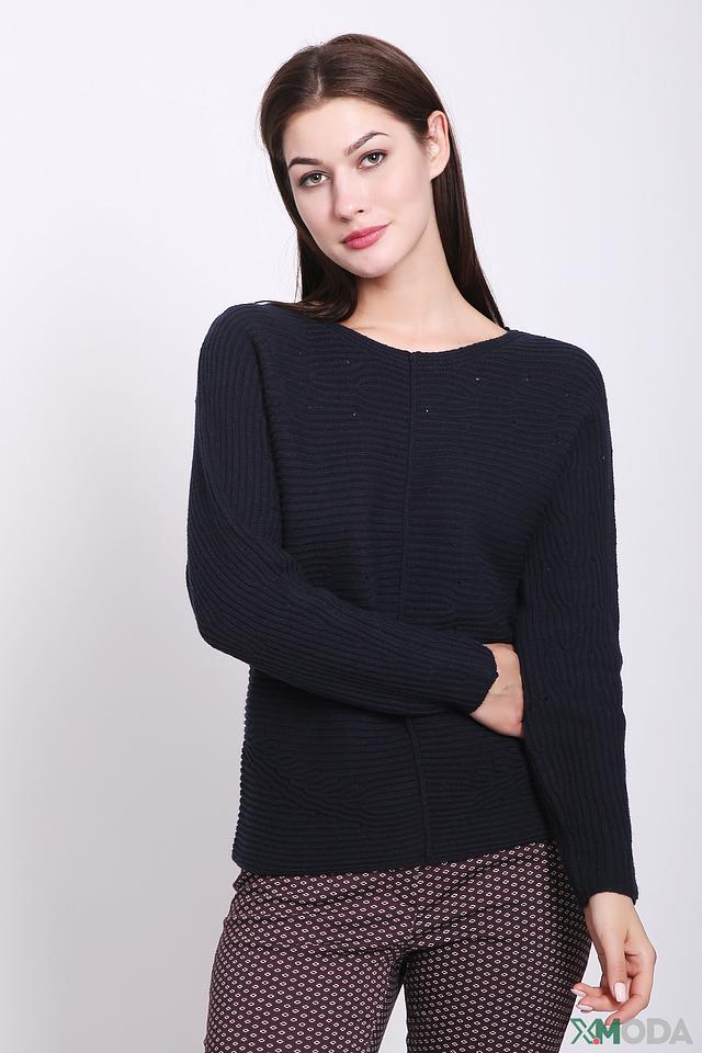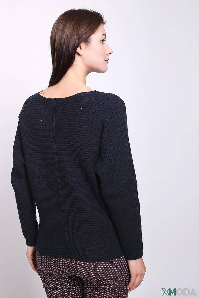 Пуловер имеет насыщенный тёмно-синий цвет и оригинальную текстуру, которая придает ему особый шарм. Округлый вырез горловины и длинные рукава делают его универсальным для различных образов.