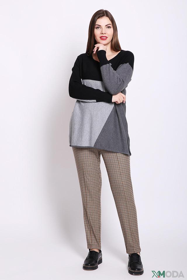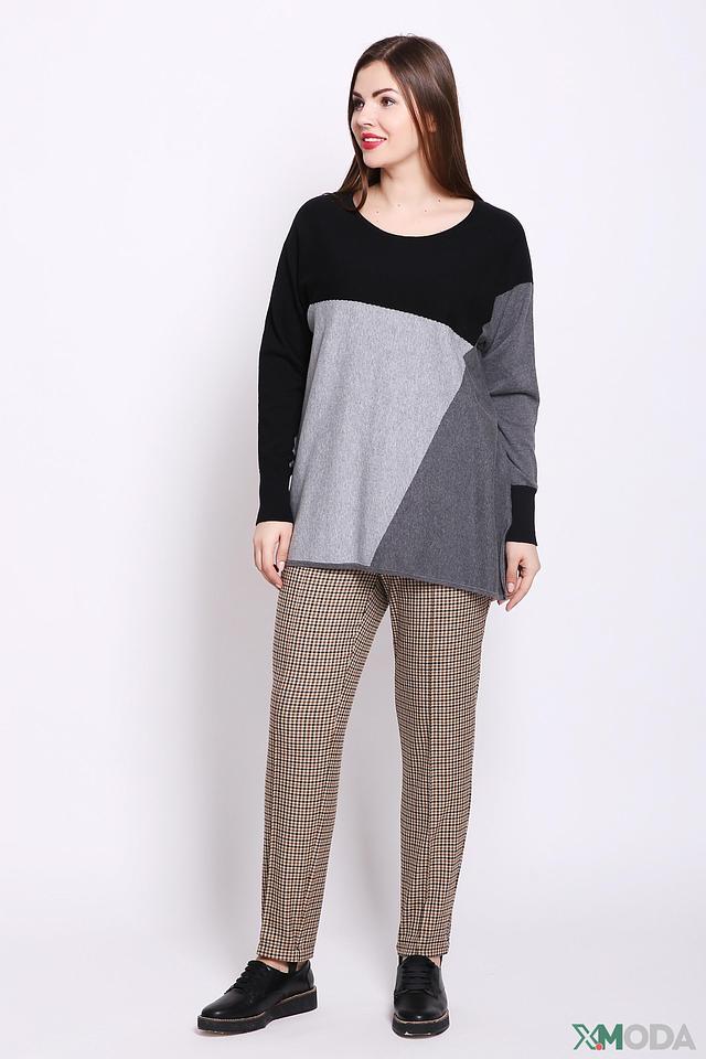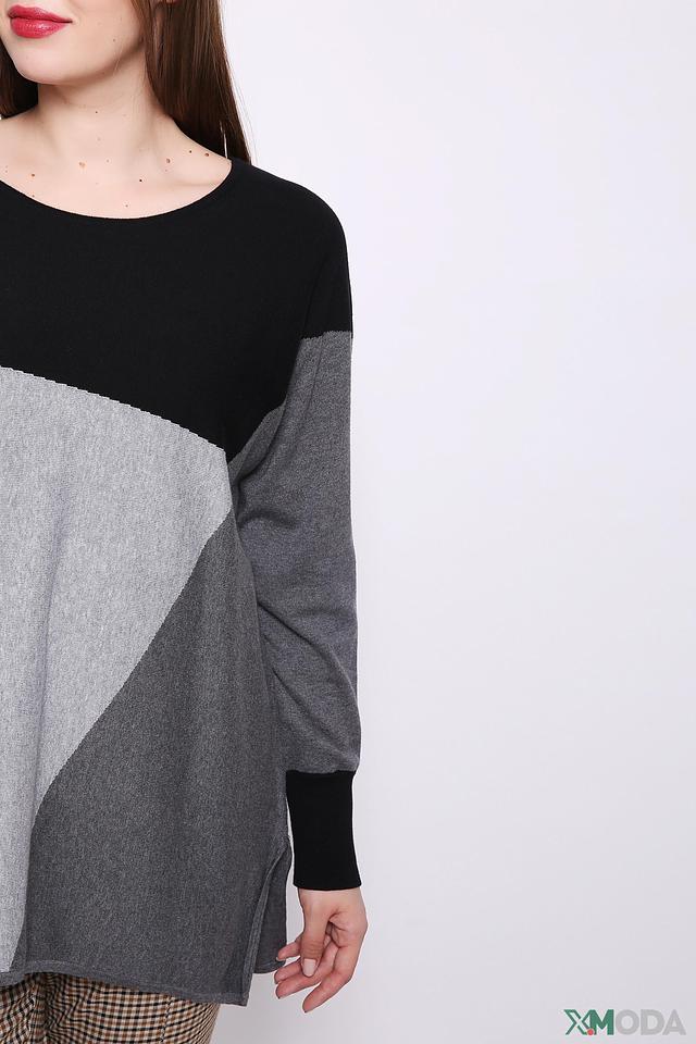 Женский пуловер Via Appia чёрно-серого цвета с геометричным дизайном. Модель свободного кроя выполнена из мягкого хлопка, обеспечивающего комфорт в носке. Идеально сочетается с брюками и юбками. Состав: хлопок 100%