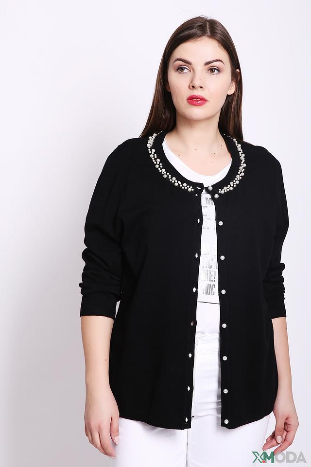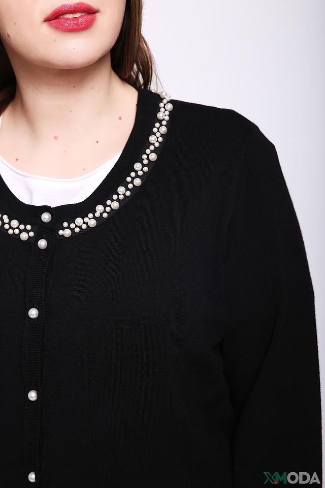 Жакет выполнен из приятной на ощупь вискозы (80%) с добавлением полиамида (20%), что обеспечивает комфорт при носке и сохранение формы. Отделка из искусственного жемчуга вдоль выреза горловины придает изделию изысканность и элегантность.