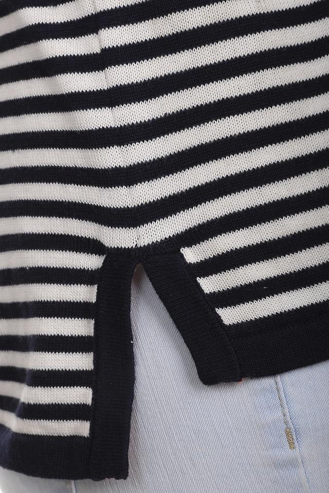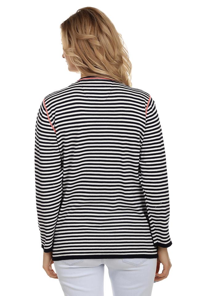 Этот женский пуловер от Via Appia – отличный выбор для тех, кто ценит комфорт и стиль. Пуловер выполнен в классическую чёрно-белую полоску, что делает его универсальным дополнением к любому гардеробу.