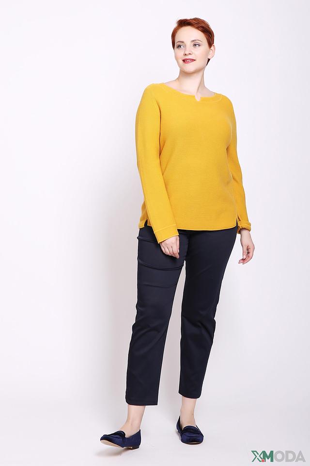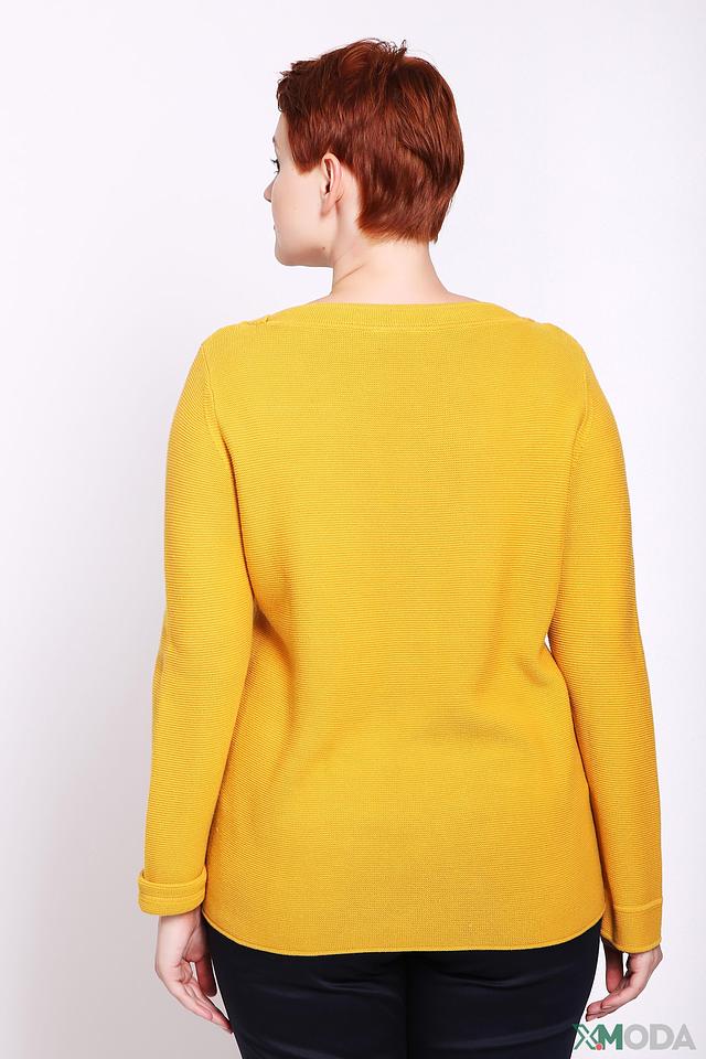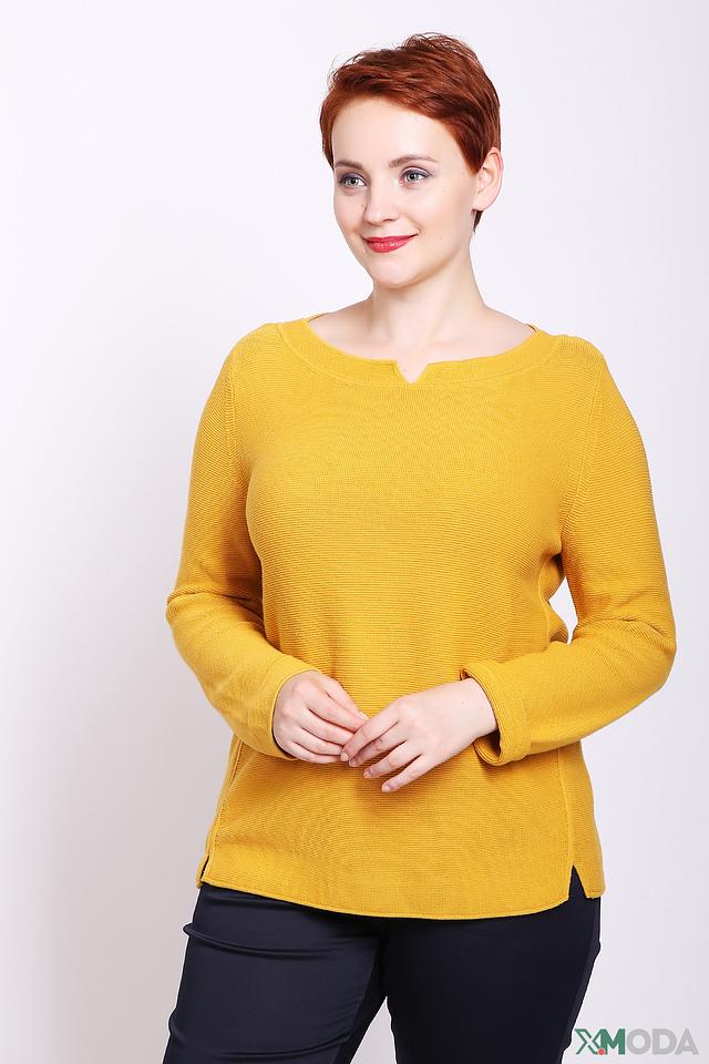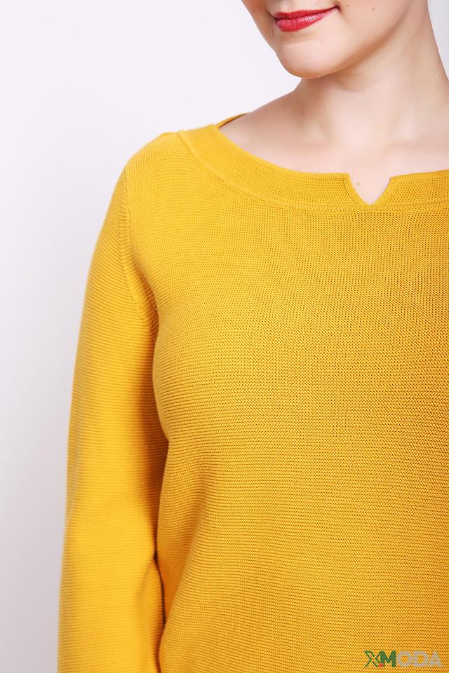 Цвет пуловера – насыщенный горчичный, который отлично сочетается с различными оттенками и позволяет создавать яркие и стильные образы. Рукава длинные, слегка зауженные к манжетам. Низ пуловера оформлен небольшими разрезами по бокам.
