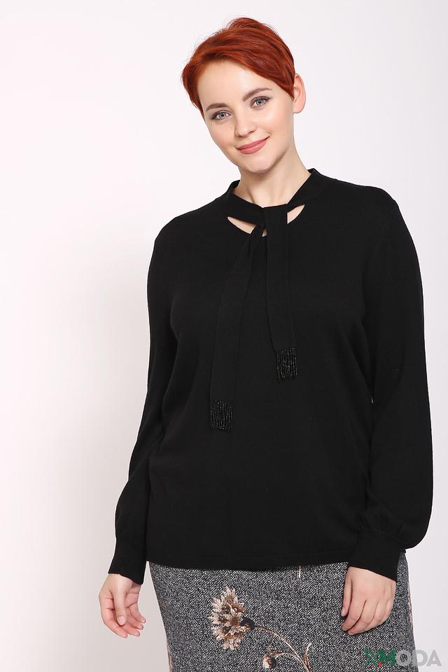 Чёрный пуловер от Via Appia – стильная модель с декоративными завязками на вырезе. Изготовлен из мягкого трикотажа с добавлением шерсти для комфорта и тепла. Идеально сочетается с юбками и брюками. Состав: вискоза 51%, хлопок 31%, шерсть 18%