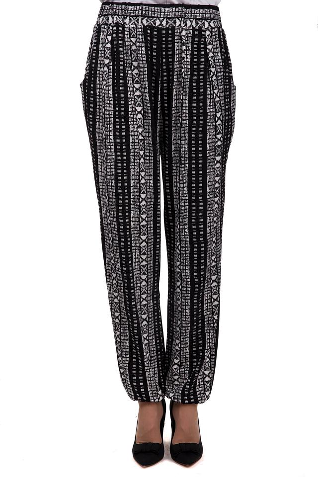 Эти стильные брюки от Via Appia станут отличным дополнением к вашему гардеробу. Они выполнены в чёрном цвете и украшены выразительным геометрическим принтом, который придает им особый шарм.