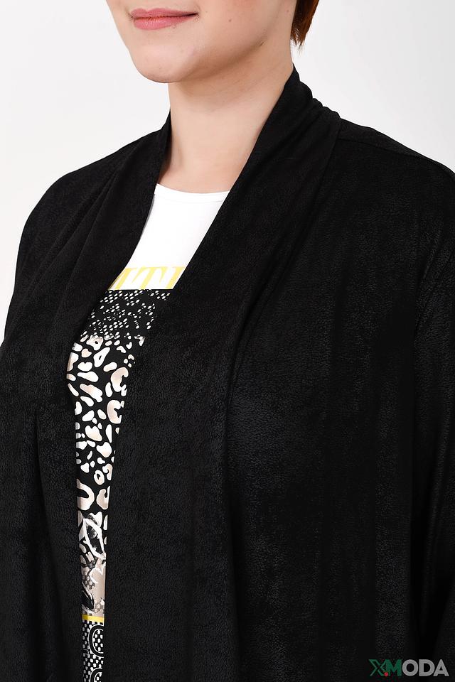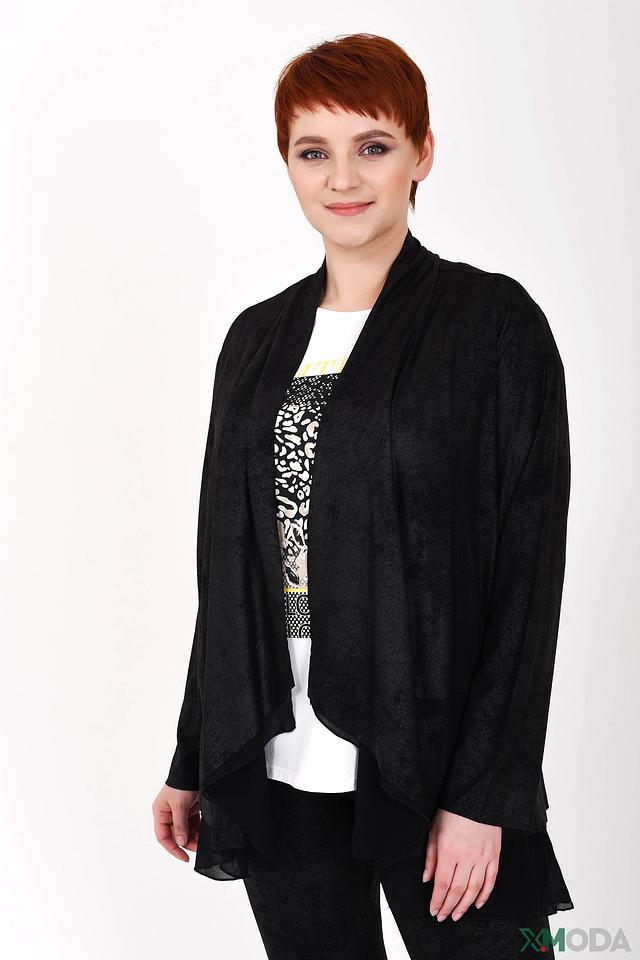 Жакет имеет свободный крой и открытую переднюю часть, что позволяет носить его поверх блузок, топов или платьев. Длинные рукава и мягкая ткань делают его комфортным в носке.