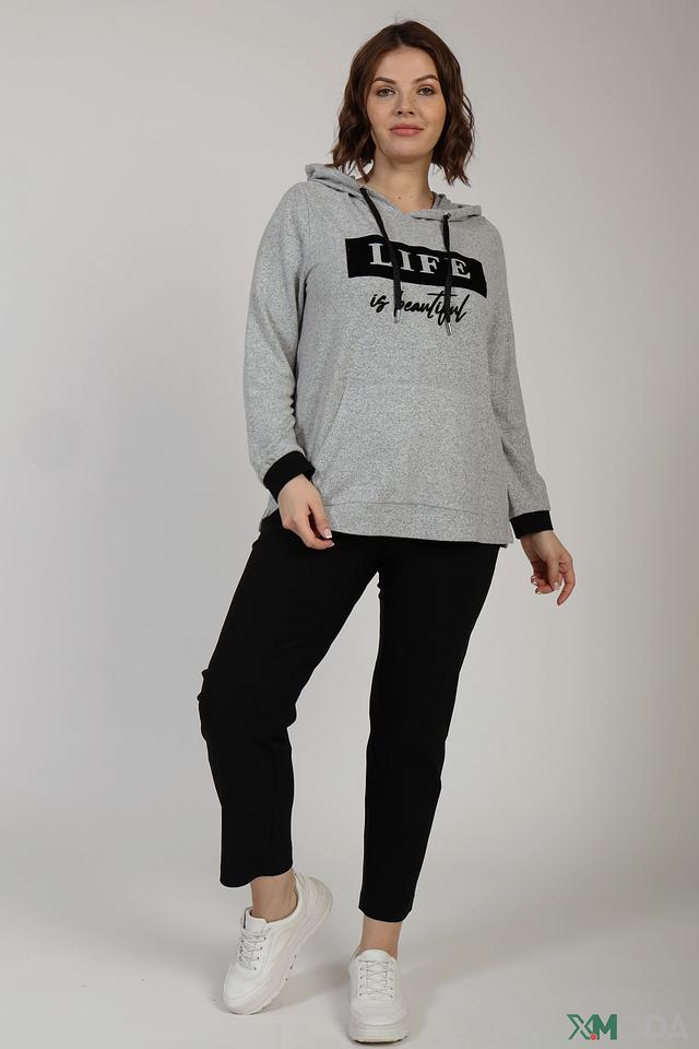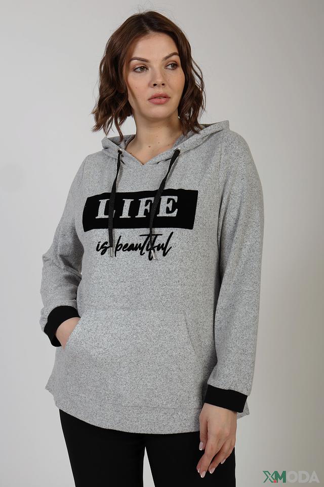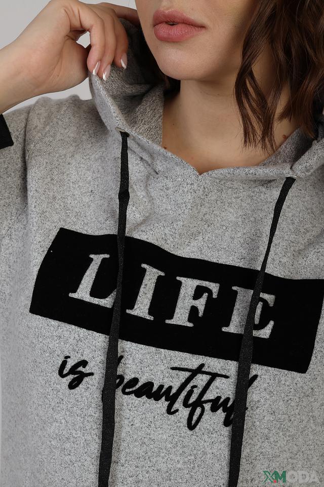 Серый пуловер Via Appia с капюшоном и принтом "LIFE is beautiful" станет отличным дополнением к вашему гардеробу. Удобный крой и мягкий материал обеспечивают комфорт в повседневной носке. Состав: вискоза 80%, полиэстер 15%, эластан 5%