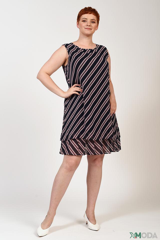 Платье украшено классическим черно-белым полосатым принтом, который всегда актуален. Вырез горловины округлый, а рукава отсутствуют, что делает платье идеальным выбором для теплой погоды. Многослойный подол придает образу динамичность и легкость.