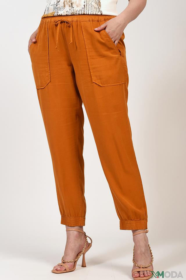 Брюки имеют прямой крой, пояс на резинке и шнурок для регулировки посадки. Модель дополнена двумя боковыми карманами и задними карманами с клапанами. Цвет брюк – насыщенный терракотовый, который легко сочетается с различными элементами одежды.