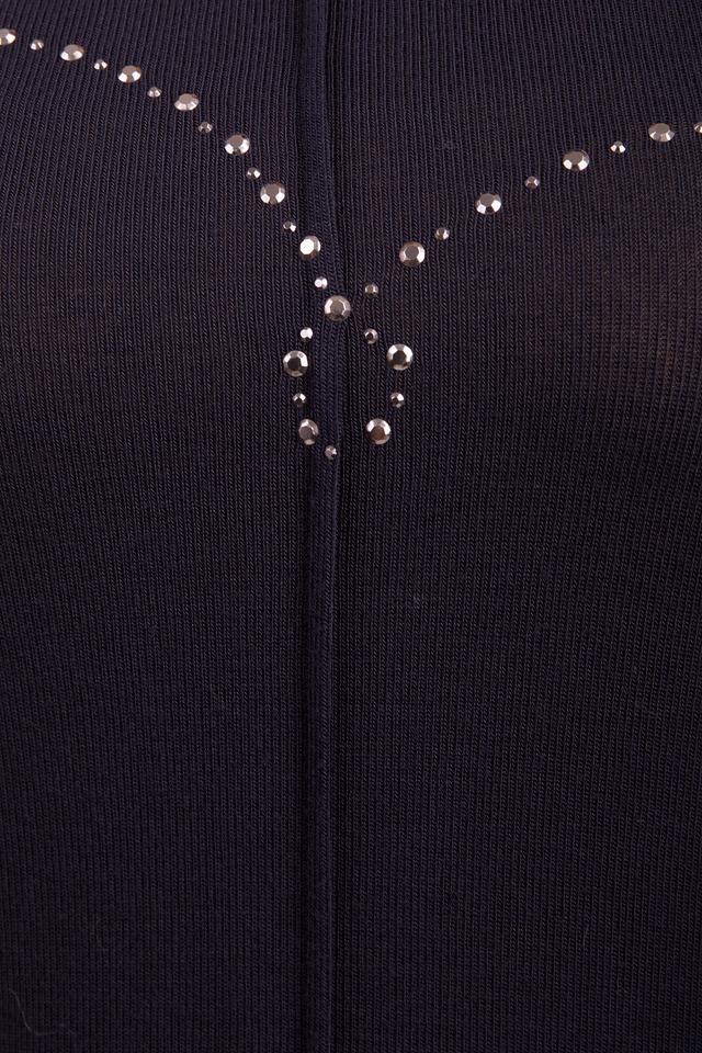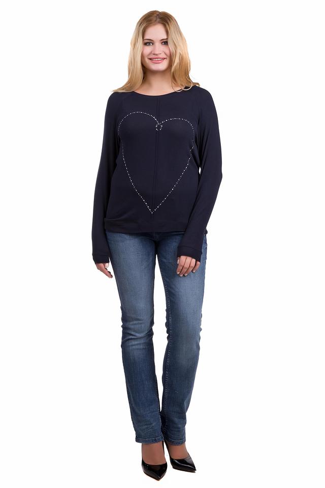 Тёмно-синий пуловер от Via Appia с декоративным сердцем из страз – стильное и комфортное решение для повседневного образа. Изготовлен из мягкой вискозы с добавлением эластана, обеспечивающего удобную посадку. Состав: вискоза 92%, эластан 8%
