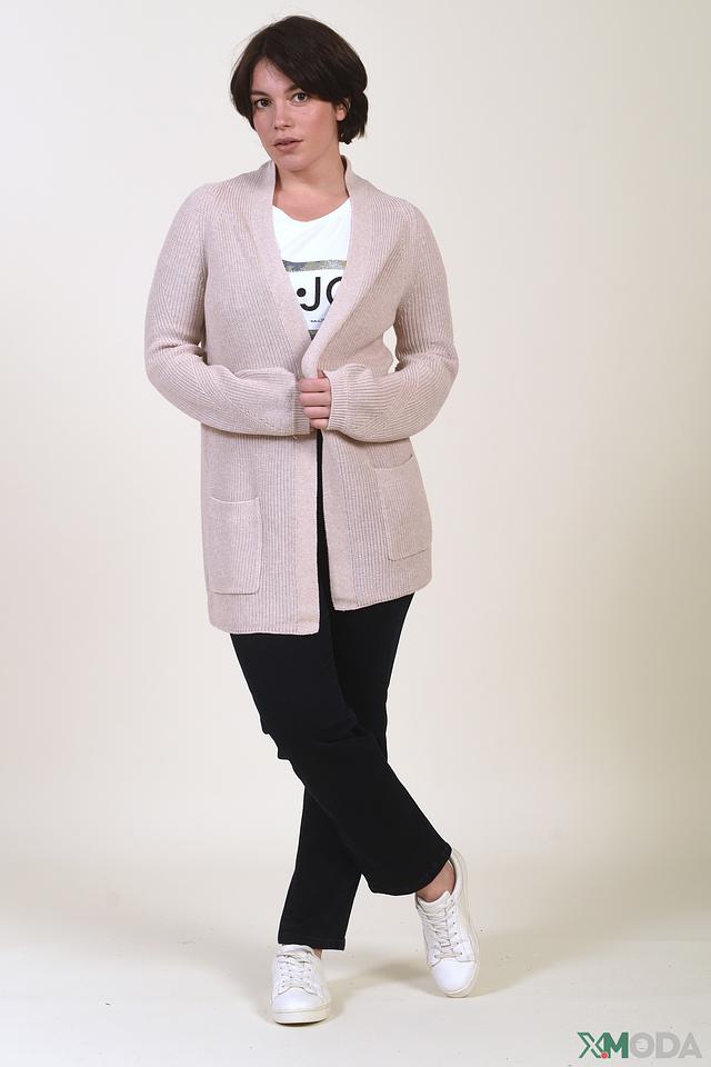 Кардиган имеет прямой крой, длинные рукава и V-образный вырез, который визуально удлиняет шею и делает силуэт более изящным. На передних частях расположены удобные карманы, которые добавляют функциональности модели.