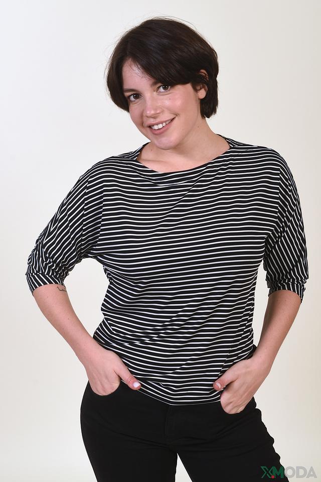 Женский пуловер Via Appia чёрно-белого цвета с полоской и рукавом 3/4. Модель выполнена из мягкой вискозы с добавлением полиэстера и эластана, обеспечивающих комфорт и хорошую посадку. Состав: вискоза 75%, полиэстер 20%, эластан 5%