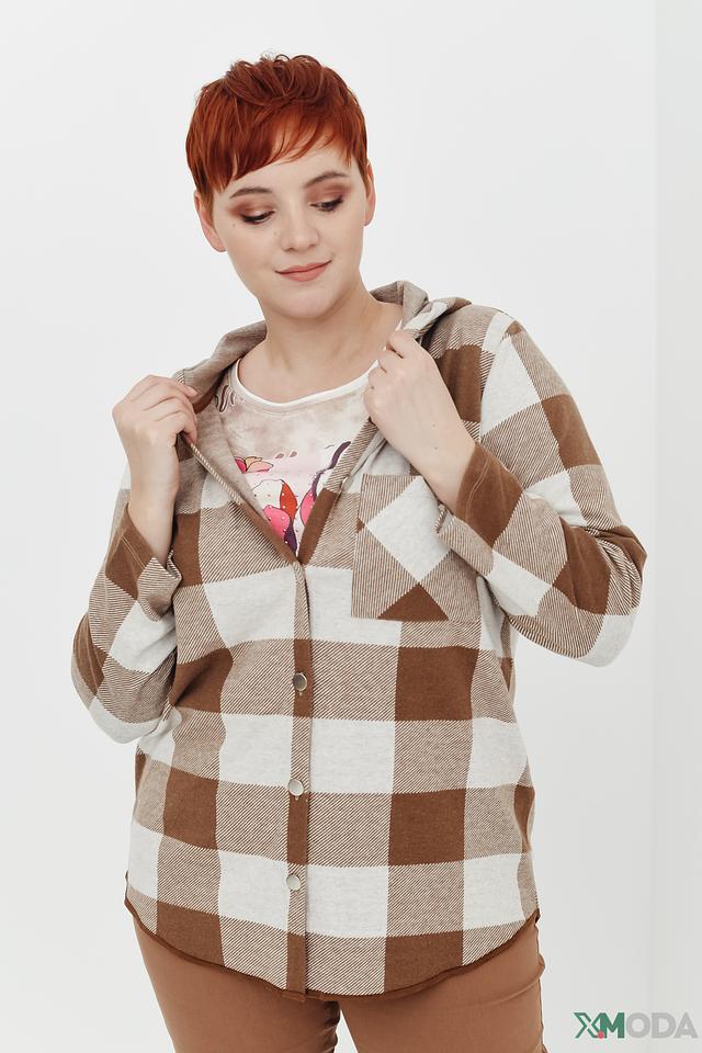 Жакет Via Appia в клетку бежево-коричневого цвета – стильное и комфортное решение для создания повседневных образов. Модель с капюшоном и застежкой на пуговицы, выполненная из мягкой ткани с добавлением вискозы и эластана. Состав: полиэстер 63%, вискоза 34%, эластан 3%