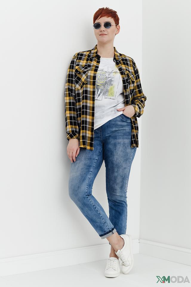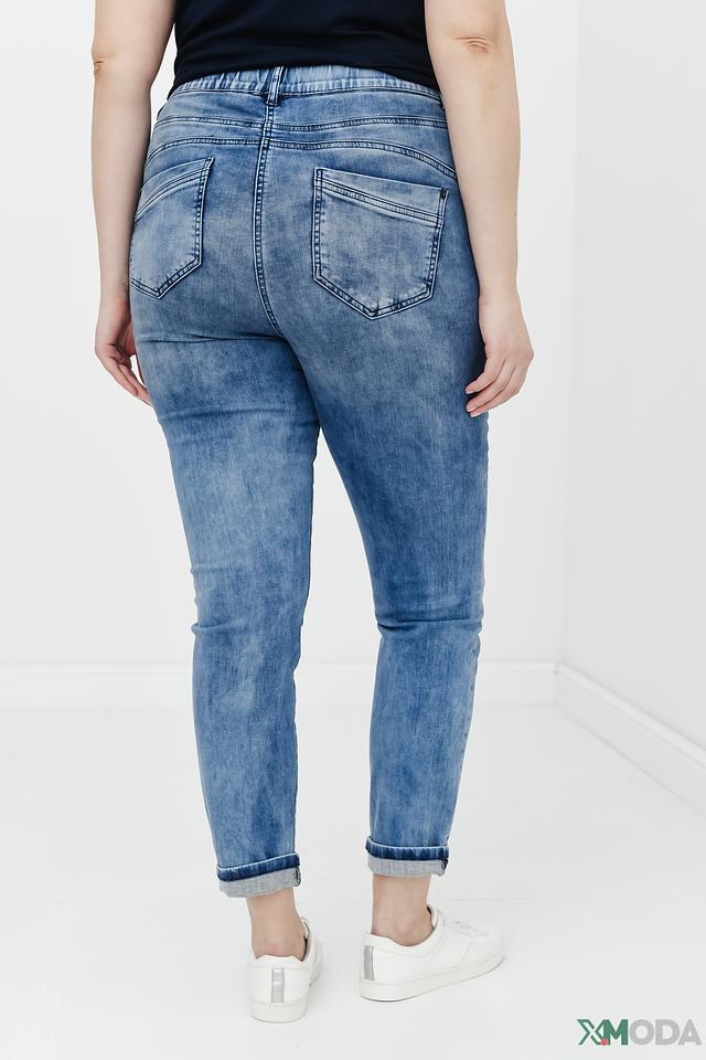 Джинсы имеют удобный эластичный пояс, который обеспечивает комфортную посадку по фигуре. Крой – зауженный к низу, с небольшим подворотом, что делает их идеальным выбором для создания повседневных образов. Застежка – скрытая молния и пуговица.