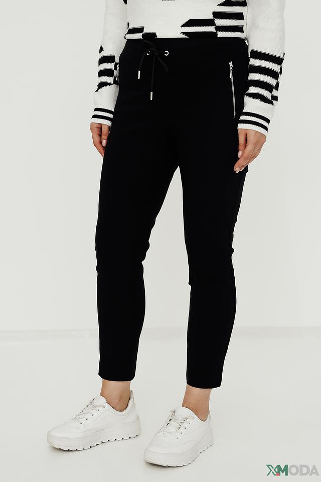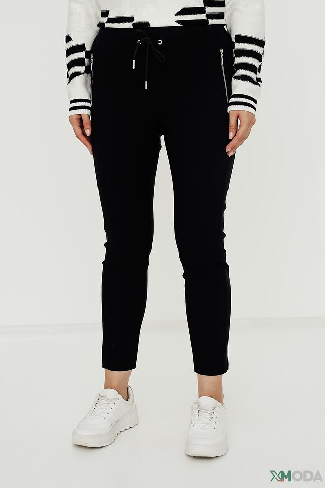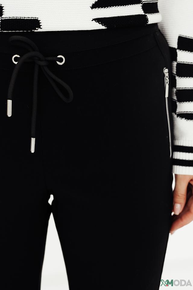 Брюки имеют прямой крой, эластичный пояс с регулирующим шнурком и манжеты внизу. Боковые молнии добавляют функциональности и акцентируют внимание на деталях. Изготовлены из высококачественной вискозы с добавлением полиамида и эластана, что обеспечивает мягкость, комфорт и хорошую посадку по фигуре.