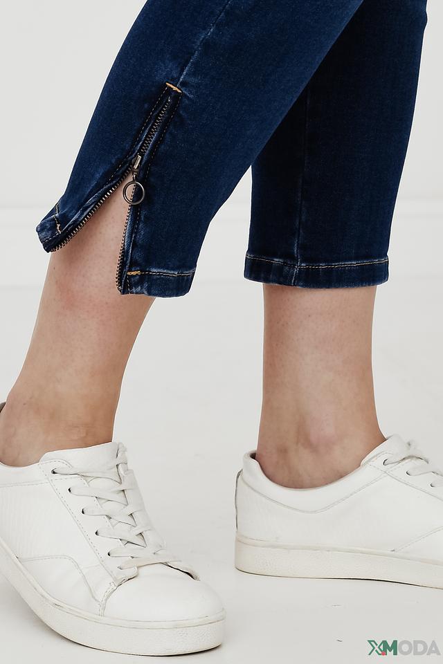 Особенности дизайна включают зауженный к низу силуэт, который визуально удлиняет ноги, а также функциональные карманы спереди и сзади. Декоративная молния на щиколотке добавляет оригинальности. Эти джинсы станут отличным дополнением к вашему гардеробу и подойдут для создания различных образов – от повседневных до более элегантных.