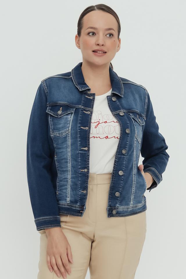 Этот джинсовый жакет от Via Appia станет незаменимой вещью в вашем гардеробе. Классический синий цвет и универсальный крой позволяют сочетать его с различными элементами одежды, создавая разнообразные образы.