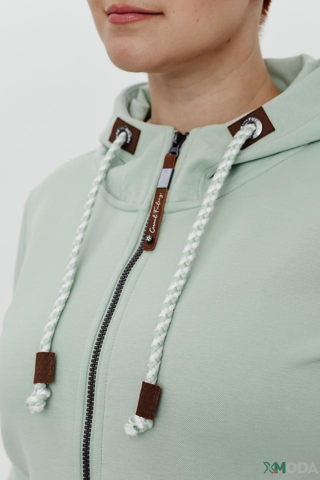 Мятный жакет Via Appia – это стильная и удобная модель на молнии с капюшоном. Жакет выполнен из мягкого хлопка с добавлением полиэстера и эластана, что обеспечивает комфорт в носке и сохранение формы. Состав: хлопок 53%, полиэстер 42%, эластан 5%