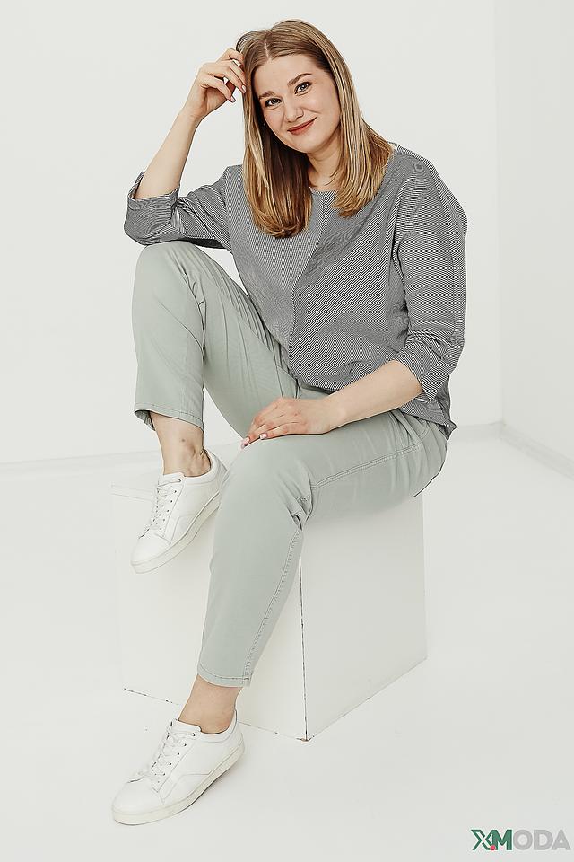 Брюки имеют удобный эластичный пояс с регулирующим шнурком, обеспечивающий комфортную посадку по фигуре. Функциональные боковые и задние карманы добавляют практичности. Крой брюк – прямой, слегка зауженный к низу, что визуально удлиняет ноги.