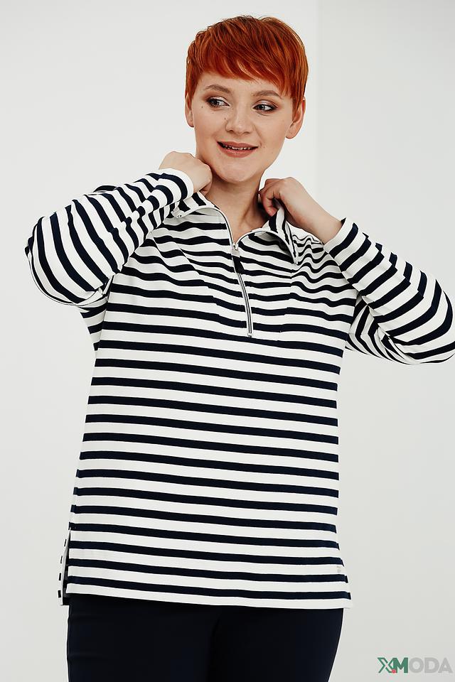 Женский пуловер Via Appia сине-белого цвета с полоской и застежкой-молнией на горловине. Изготовлен из 100% хлопка, обеспечивающего комфорт и удобство в носке. Стильный и практичный выбор для повседневного гардероба. Состав: хлопок 100%