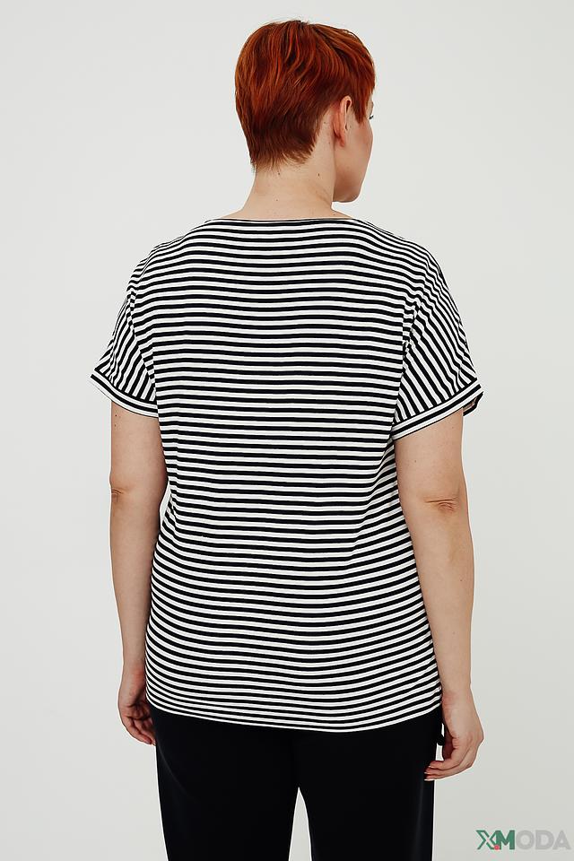 Футболка имеет прямой, свободный крой, который не сковывает движений и подходит для любого типа фигуры. Короткие рукава с контрастной белой полоской добавляют образу динамичности.