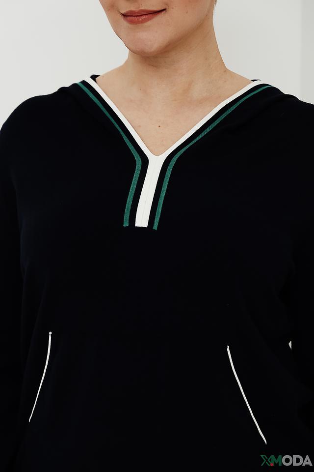 Чёрный пуловер от Via Appia с капюшоном и контрастной отделкой – стильный и комфортный выбор для повседневного гардероба. Модель выполнена из мягкой вискозы с добавлением полиамида, что обеспечивает приятные тактильные ощущения и хорошую посадку. Состав: вискоза 72%, полиамид 28%