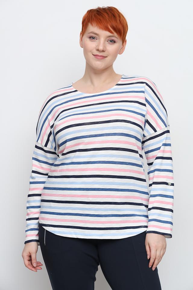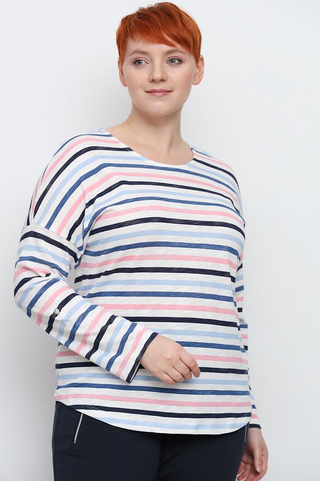 Женский лонгслив Via Appia в бело-сине-розовую полоску – удобная и стильная модель из 100% хлопка. Свободный крой и длинные рукава делают его идеальным для повседневной носки. Дополнен аккуратной застежкой на рукаве. Состав: хлопок 100%