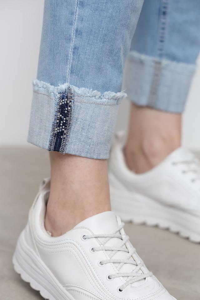 Женские джинсы Via Appia голубого цвета с завышенной талией и эластичным поясом. Модель выполнена в стиле casual с эффектом потертости и укороченными штанинами, застегиваются на пояс с резинкой. Состав: хлопок 97%, эластан 3%