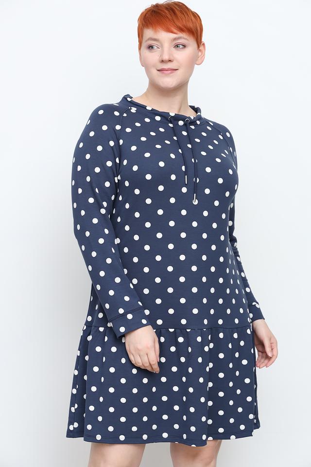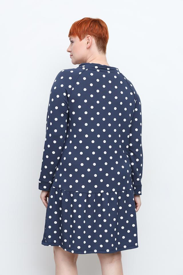 Основной цвет платья – насыщенный синий, а рисунок – белый горошек. Такое сочетание делает платье универсальным и подходящим для различных случаев. Оно отлично сочетается с кедами, кроссовками или босоножками, создавая непринужденный и стильный образ.
