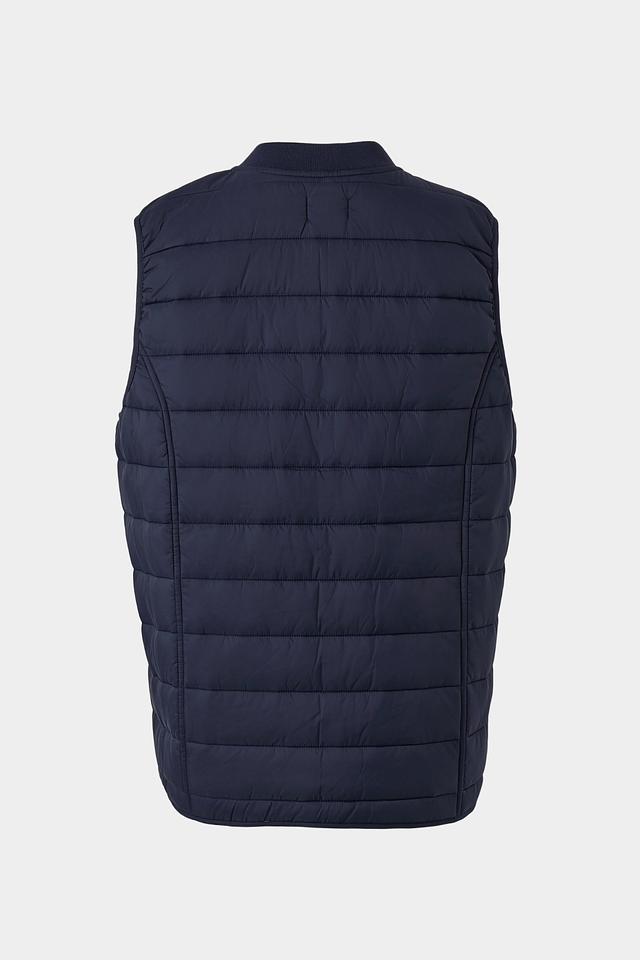 Благодаря стеганой текстуре и классическому темно-синему цвету, этот жилет легко сочетается с различными элементами одежды, создавая стильные и практичные образы. Он идеально подходит для прохладной погоды и станет незаменимой вещью в вашем гардеробе.