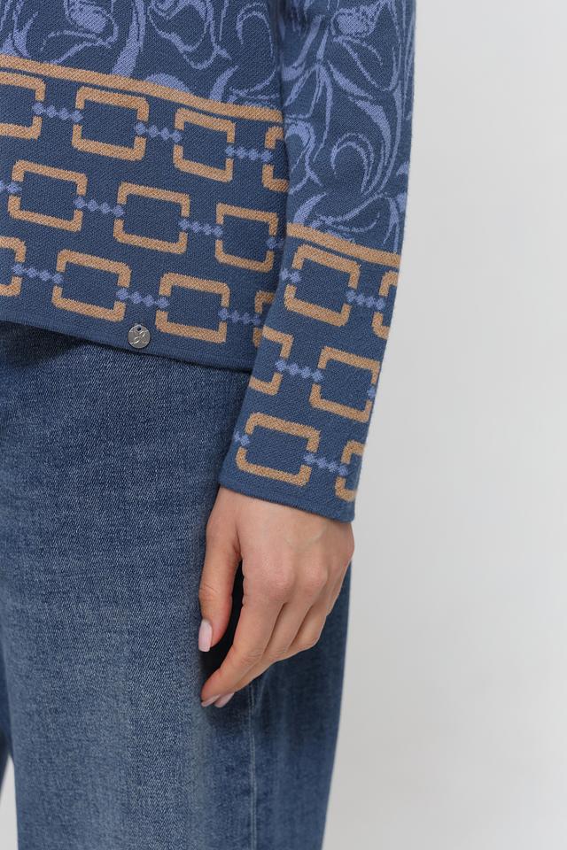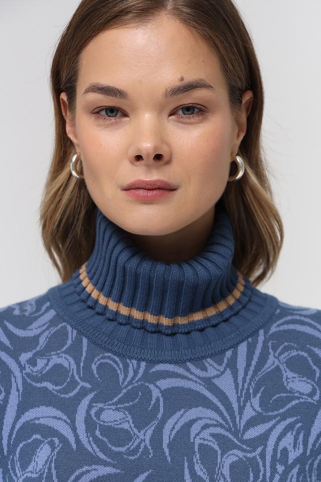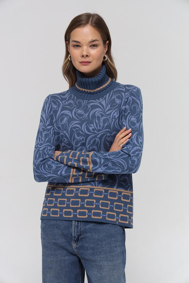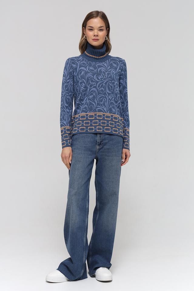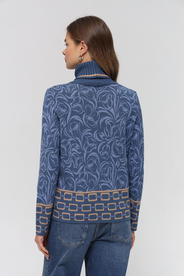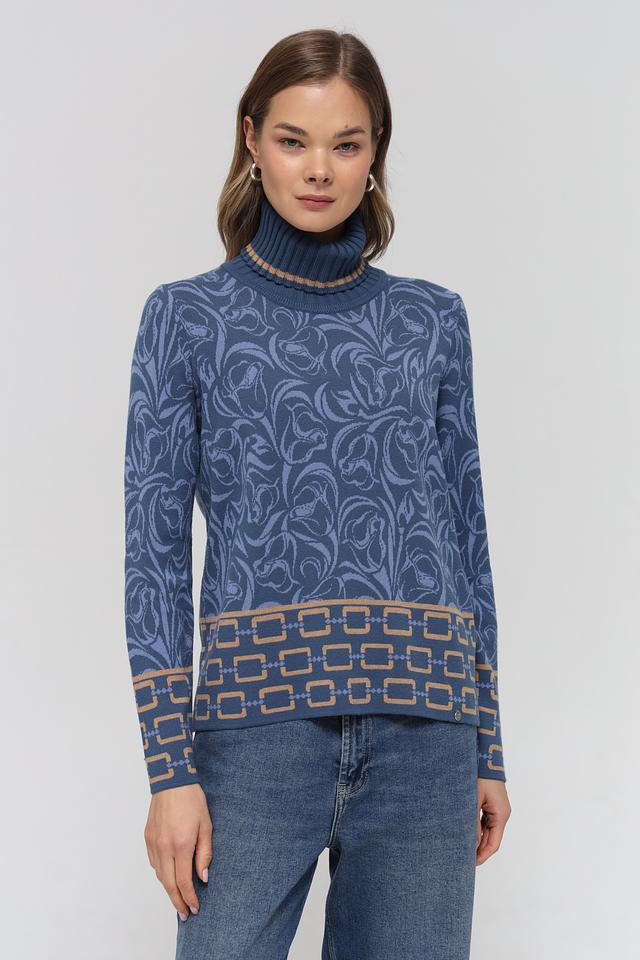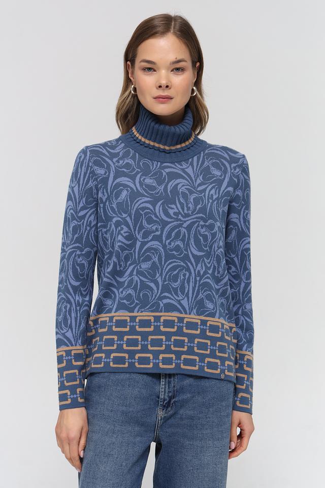 Синяя водолазка Gollehaug с оригинальным цветочным узором и геометрическим декором. Изготовлена из мягкого и приятного к телу трикотажа, станет отличным дополнением к вашему гардеробу. Состав: модал 45%, полиакрил 37%, полиамид 18%