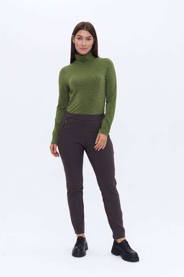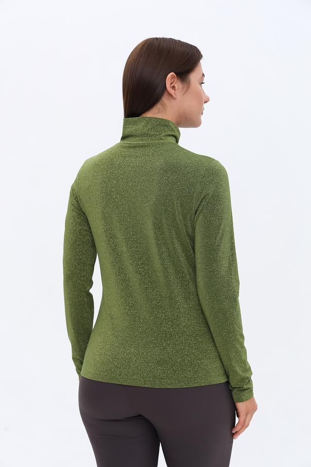 Водолазка имеет облегающий крой, подчеркивающий фигуру, и высокий воротник, который обеспечивает дополнительное тепло и защиту от холода. Состав ткани включает полиэстер, полиамид, эластан и металлизированное волокно, что обеспечивает комфорт, эластичность и долговечность изделия.