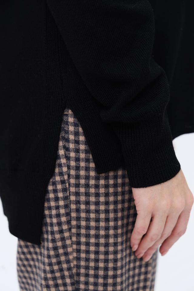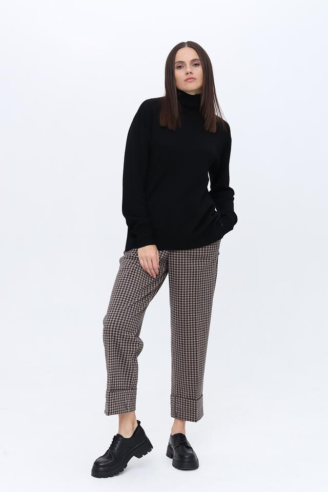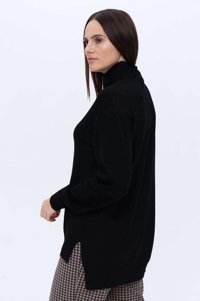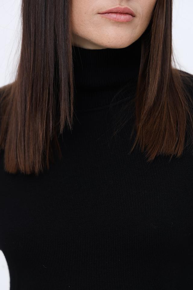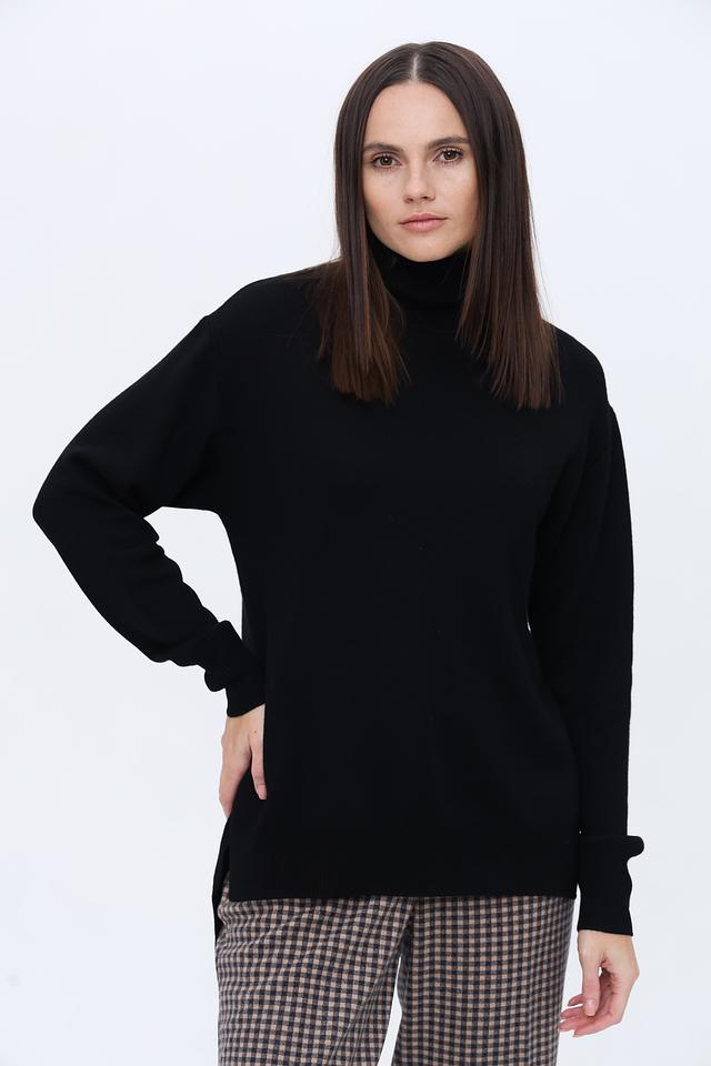 Водолазка имеет свободный крой, который обеспечивает свободу движений и создает расслабленный силуэт. Высокий воротник-стойка добавляет элегантности и защищает от холода. Длинные рукава и слегка удлиненный силуэт делают эту модель подходящей для повседневной носки и особых случаев.