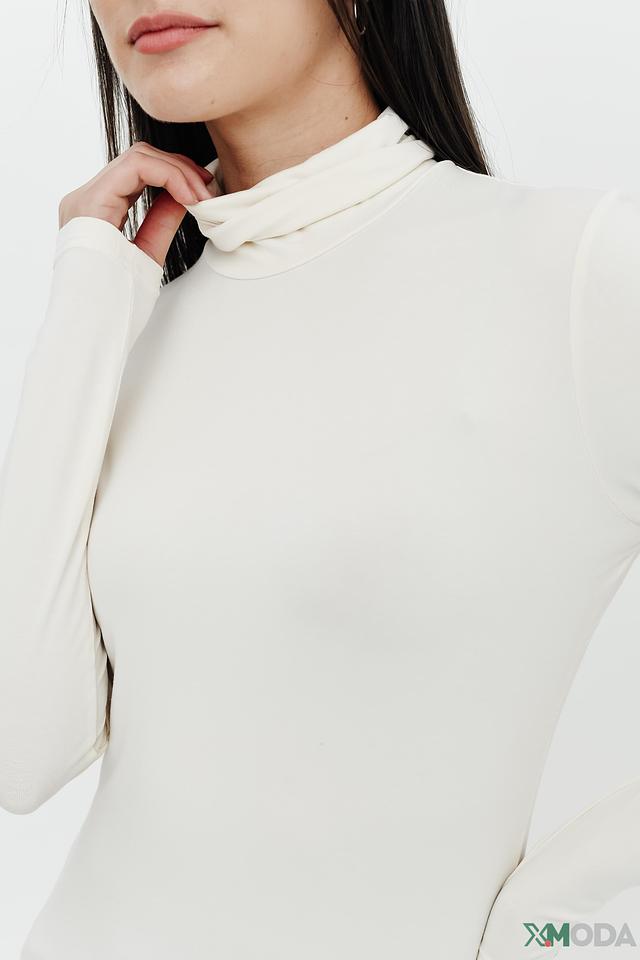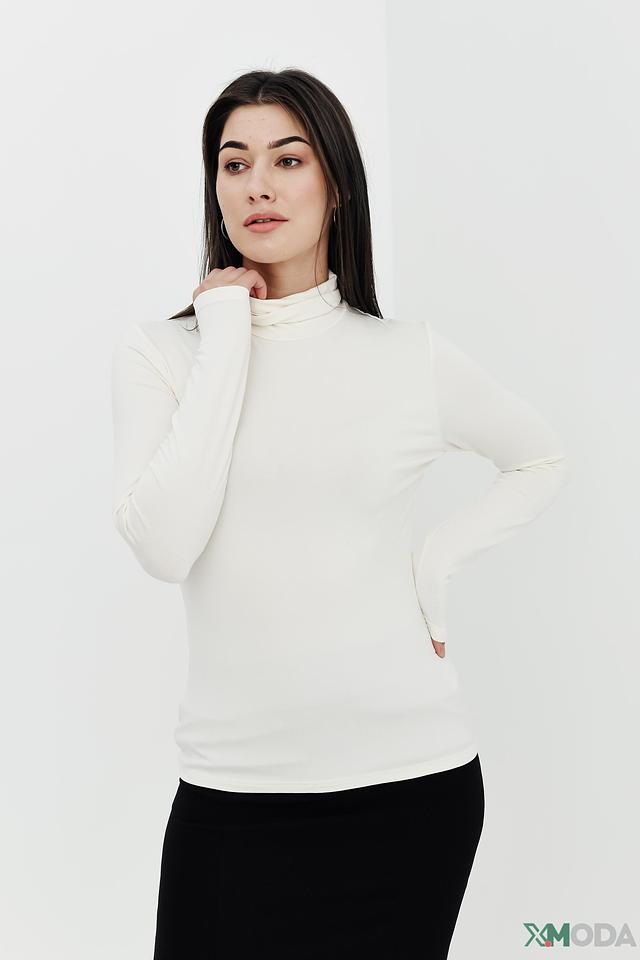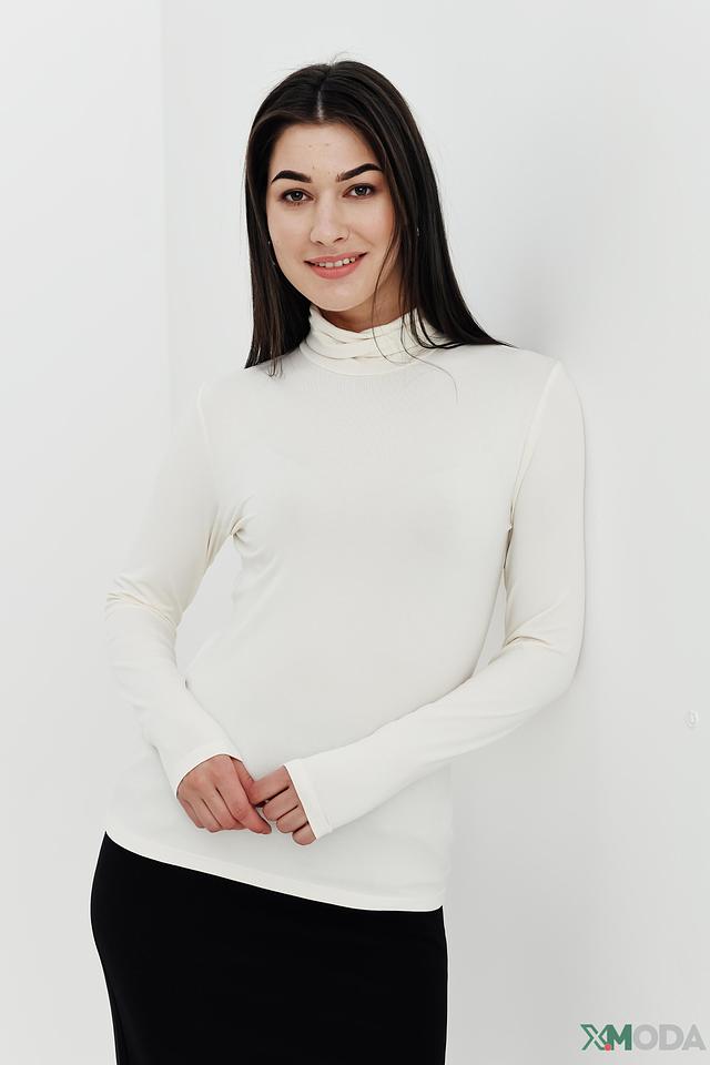 Модель имеет классический крой с длинными рукавами и высоким воротом-стойкой. Водолазка молочного цвета станет отличной базовой вещью в вашем гардеробе, легко сочетаясь с юбками, брюками и джинсами.