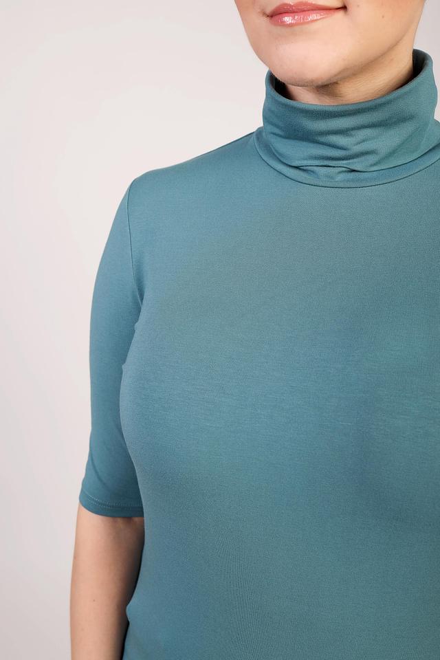 Бирюзовый цвет водолазки освежает образ и подходит к различным цветовым решениям. Она отлично сочетается с джинсами, брюками, юбками и пиджаками.