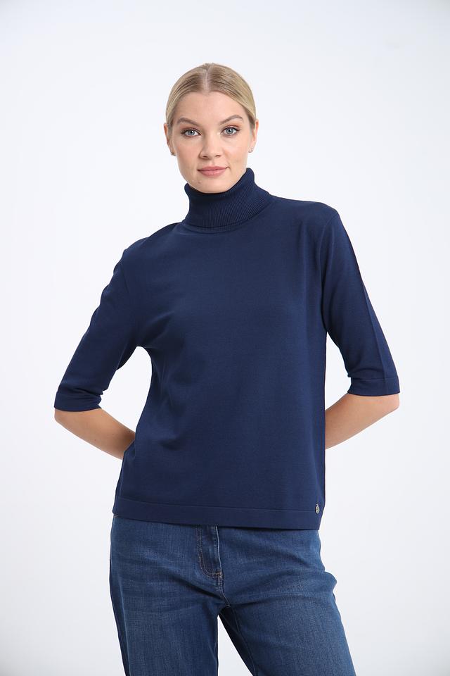 Синяя водолазка Pezzo с рукавом 3/4 – это стильная и комфортная база для вашего гардероба. Изготовлена из мягкого и приятного к телу сочетания вискозы и нейлона, обеспечивающего удобную посадку и долговечность. Состав: вискоза 80%, нейлон 20%