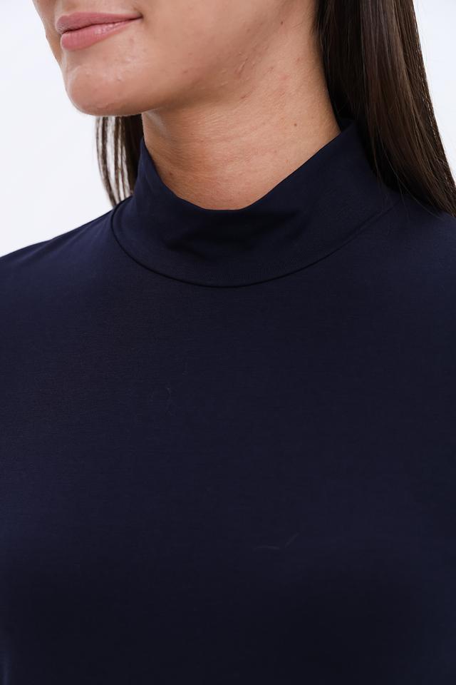 Модель выполнена из высококачественного хлопка с добавлением эластана, что обеспечивает комфорт при носке и сохранение формы изделия. Водолазка отлично тянется, не сковывает движений и подчеркивает достоинства фигуры.
