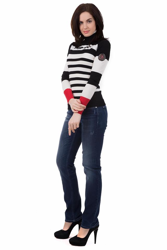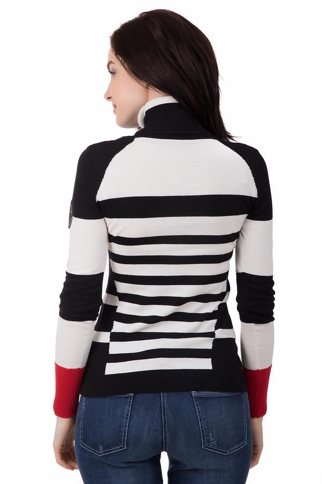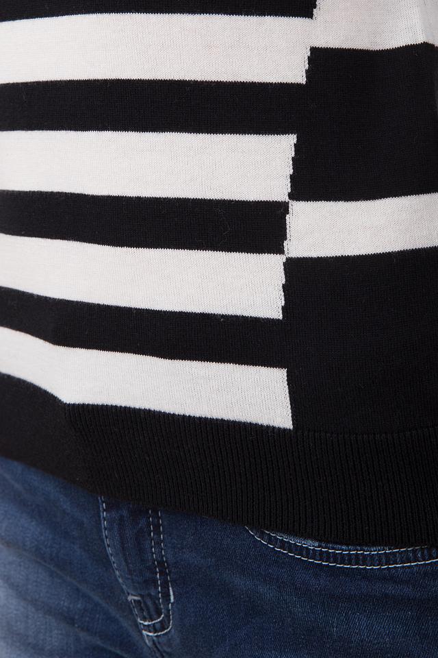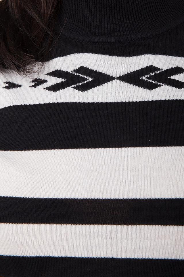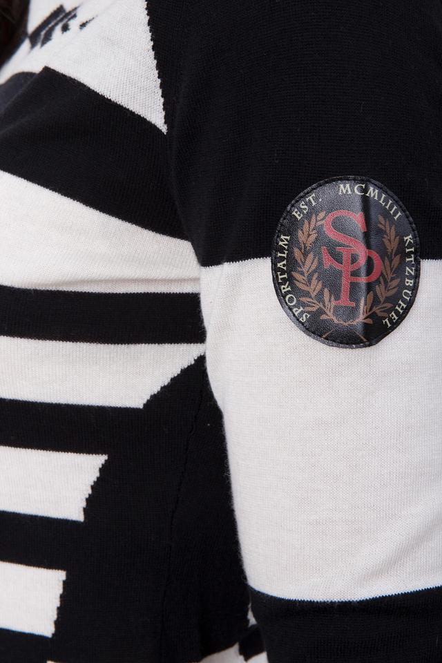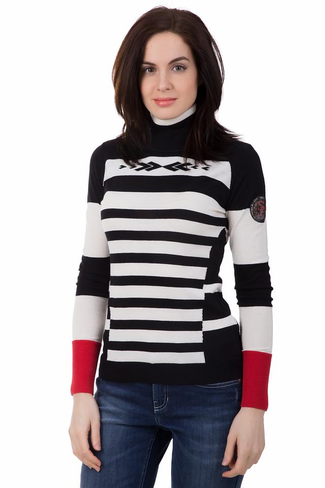 Женская водолазка Sportalm чёрно-белого цвета с полосатым узором и декоративной нашивкой. Модель выполнена из мягкого и приятного к телу трикотажа, сочетающего хлопок, модал и шерсть. Состав: хлопок 55%, модал 35%, шерсть 10%