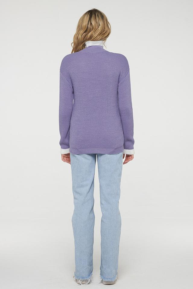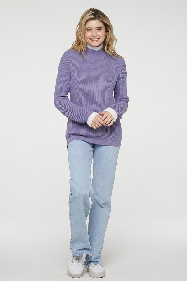 Водолазка имеет лавандовый цвет и классический крой, который подходит для создания различных образов. Белые манжеты на рукавах добавляют контраст и делают модель более интересной.