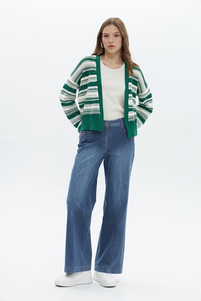 Женский жакет Tom Tailor зелёного цвета с ярким полосатым узором станет стильным дополнением к вашему гардеробу. Модель выполнена из 100% хлопка, что обеспечивает комфорт и удобство в носке. Состав: хлопок 100%
