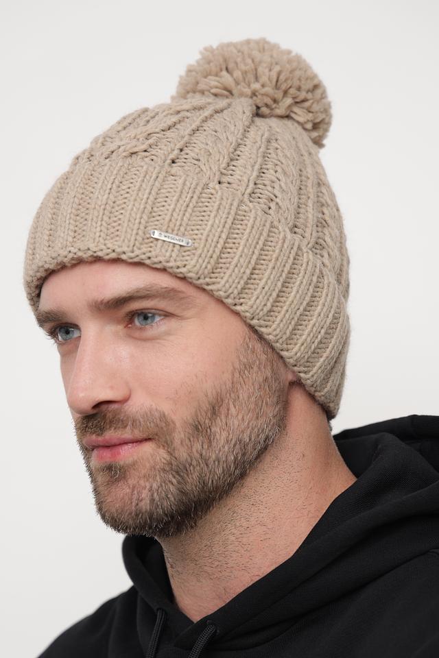 Бежевая шапка Wegener с помпоном – стильный и тёплый аксессуар для мужчин. Изготовлена из мягкого полиакрила с добавлением шерсти, обеспечивающей комфорт и тепло в холодную погоду. Состав: полиакрил 95%, шерсть 5%