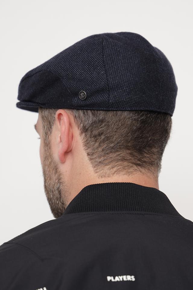 Кепка имеет классическую форму и тёмно-синий цвет с текстурным рисунком. На левой стороне кепки расположена небольшая металлическая эмблема бренда. Благодаря эластану в составе, кепка хорошо держит форму и обеспечивает удобную посадку.