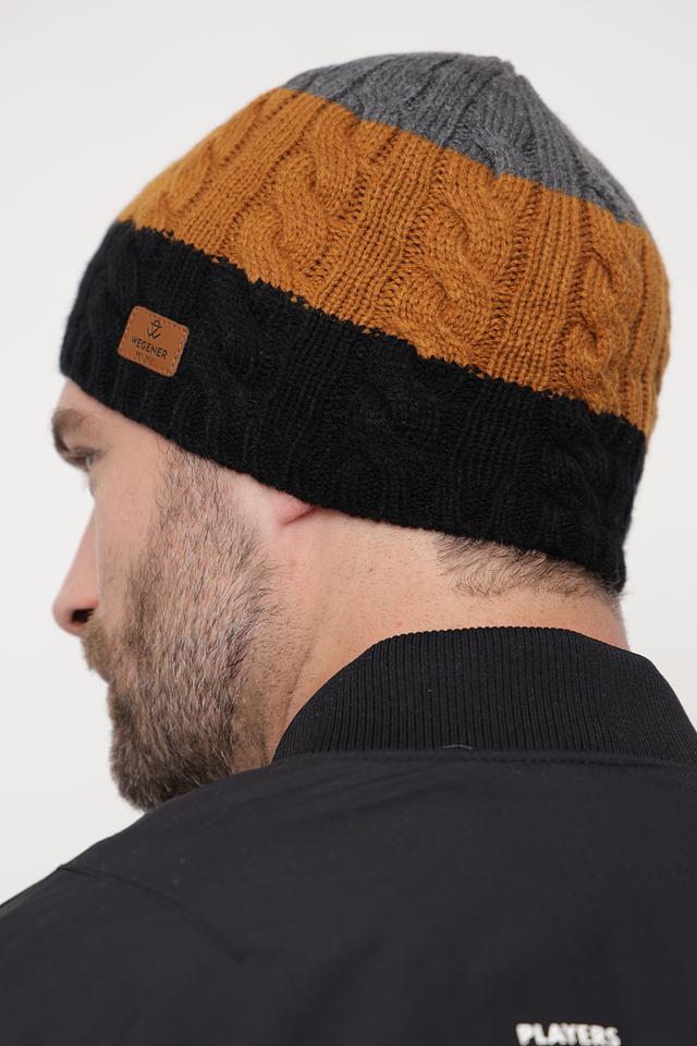 Мужская шапка Wegener выполнена в сочетании чёрного, горчичного и серого цветов. Модель выполнена из мягкого полиакрила и имеет удобную посадку благодаря эластичной вязке. Состав: полиакрил 100%
